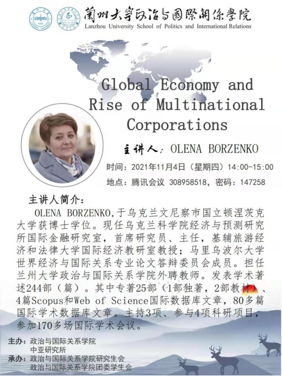 应3522浦京集团登录入口、兰州大学中亚研究所邀请,乌克兰科学院经济与预测研究所研究员耶列那·波尔申科为我校师生做学术讲座。欢迎广大师生届时参加。