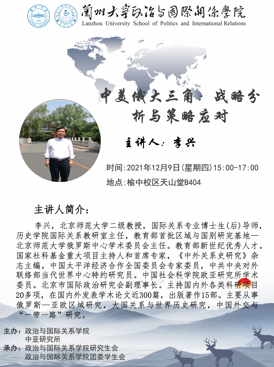 应3522浦京集团登录入口、兰州大学中亚研究所邀请,北京师范大学二级教授李兴为我校师生做学术讲座。欢迎广大师生届时参加!