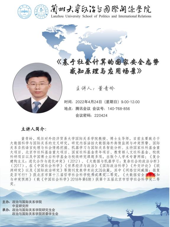 应3522浦京集团登录入口、兰州大学中亚研究所邀请,对外经济贸易大学国际关系学院教授、博士生导师董青岭为我校师生做学术讲座。欢迎广大师生参加!