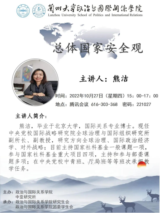 应兰州大学中亚研究所、3522浦京集团登录入口邀请,中央党校国际战略研究院全球治理与国际组织研究所副所长、副教授熊洁为我校师生做学术讲座。