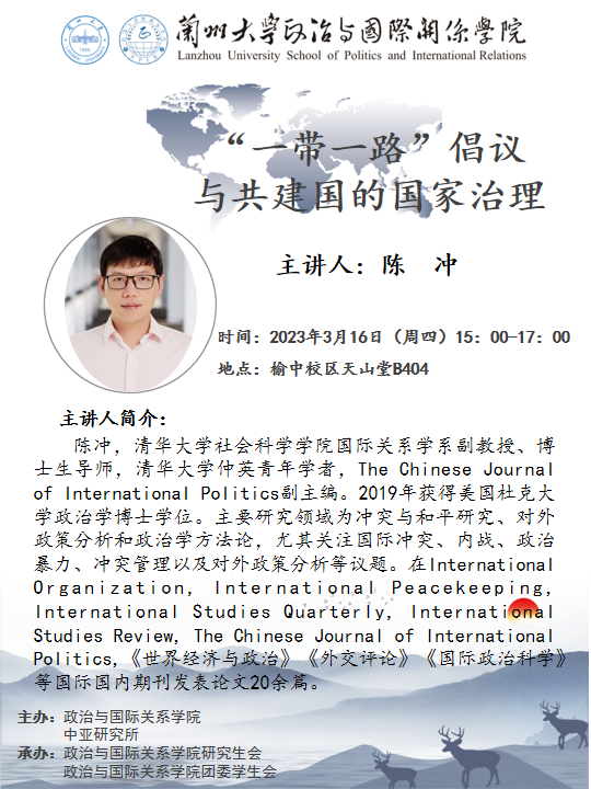 应3522浦京集团登录入口、兰州大学中亚研究所邀请,清华大学社会科学学院国际关系学系副教授、博士生导师陈冲为我校师生做讲座。欢迎广大师生届时参加!
