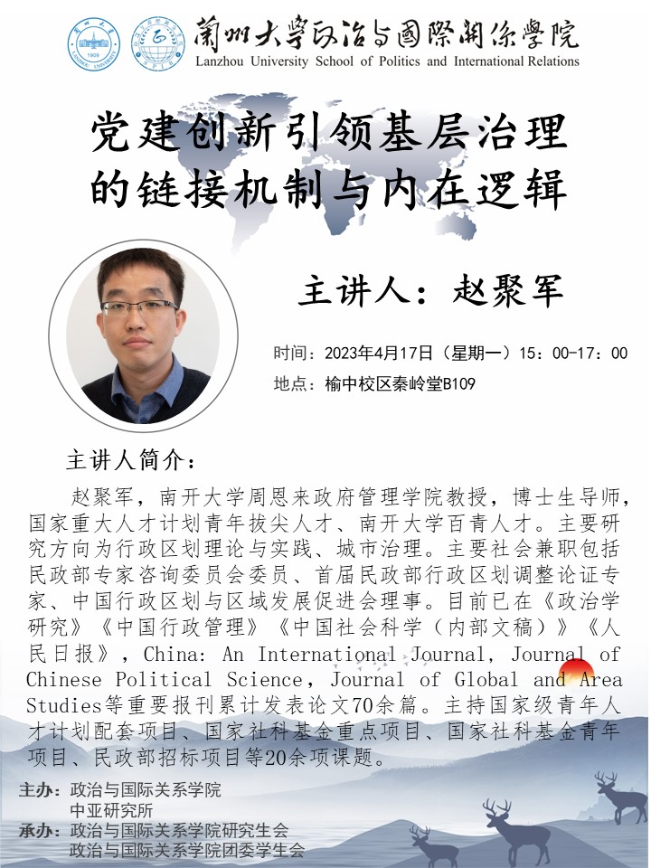 应3522浦京集团登录入口、兰州大学中亚研究所邀请,南开大学周恩来政府管理学院教授,博士生导师赵聚军为我校师生做讲座。欢迎广大师生届时参加!