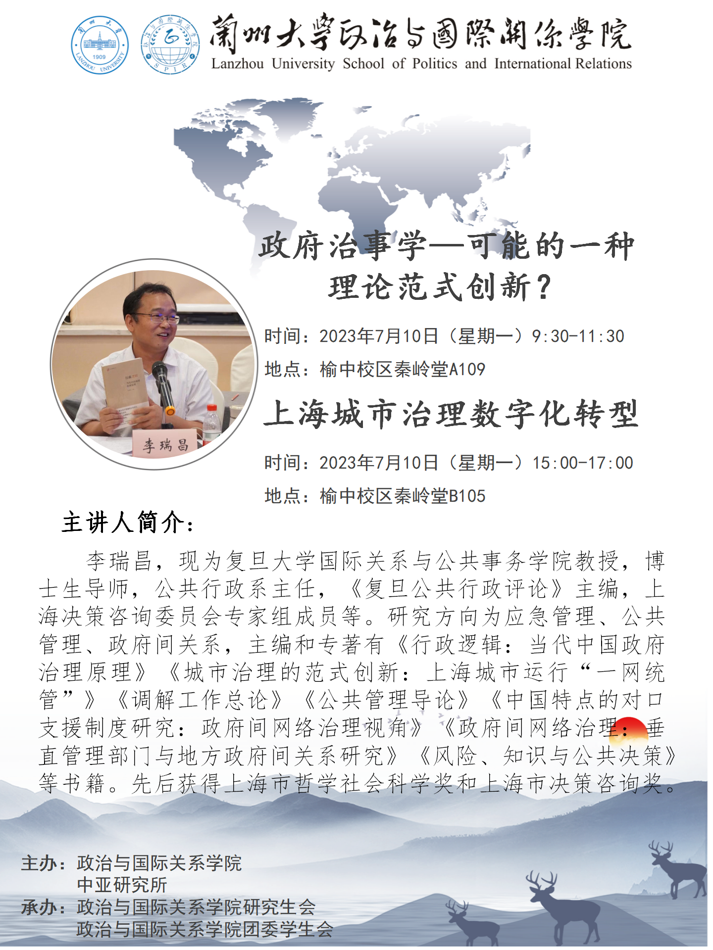 应3522浦京集团登录入口、兰州大学中亚研究所邀请,复旦大学国际关系与公共事务学院教授,博士生导师李瑞昌为我校师生做讲座。欢迎广大师生届时参加!