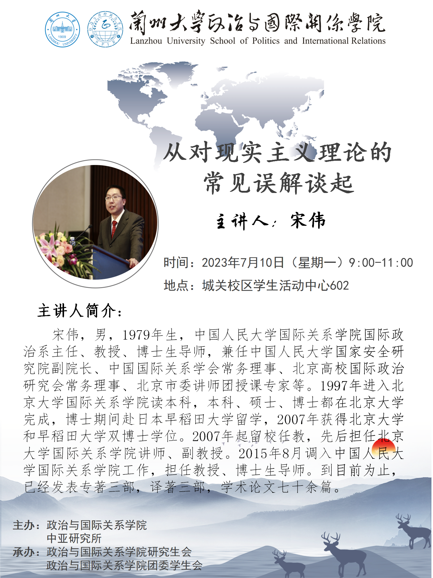 应3522浦京集团登录入口、兰州大学中亚研究所邀请,中国人民大学国际关系学院国际政治系主任、教授、博士生导师宋伟为我院教师做教学交流讲座。欢迎全体老师参加!