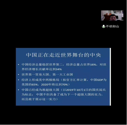 During this lecture, Professor Hu analyzed in detail the development trend of Sino-US relations from the perspective of the international situation under the new epidemic situation. This will not only help to deepen our students' understanding of the Sino-US relations under the epidemic situation, but also further arouse our students'thinking on the current Sino-US relations. It is of great significance to enhance our students' professional analysis ability and broaden their international vision.