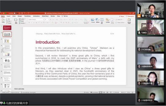 In the Introduction to International Political Economy course, Mr Gerald Schneider explained in detail the construction and development of international political economy, using data to show the international political and economic situation and explain the interaction between international politics and economy, reflecting the changes in international political economy. In Contemporary Marxism and the Chineseisation of Marxism, Mr Mahoney takes students through a different perspective on contemporary Marxism and the Chineseisation of Marxism, with a focus on Chinese dialectical thinking in the context of the traditional Chinese doctrine of Yin and Yang. The module is of positive significance in developing the cross-fertilisation of disciplines among our students.