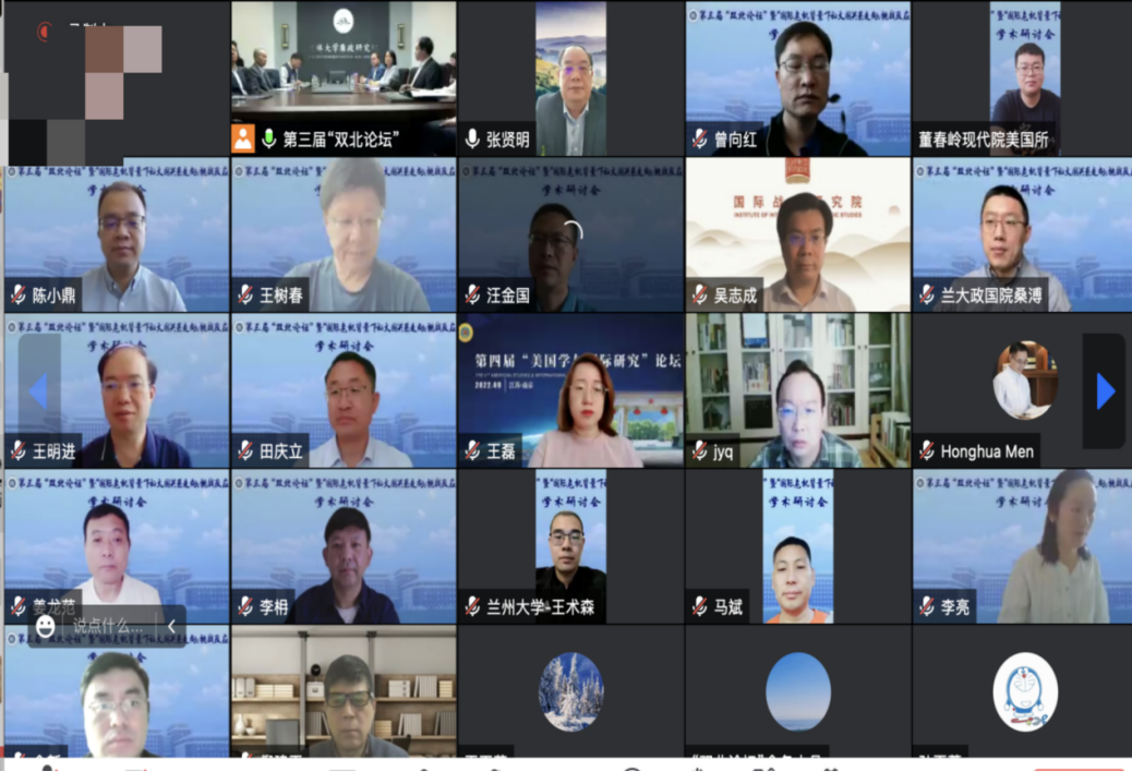On September 24, 2022, the third "Dual-North Forum" and the academic seminar "The Trend of Major-Country Relations in the Context of International Crisis: Challenges and Responses", co-sponsored by the School of Politics and International Relations of Lanzhou University and the School of Administration of Jilin University, was held online. From Jilin University, Lanzhou University, Tongji University, Fudan University, Beijing Foreign Studies University, Chinese Academy of Social Sciences, Guangdong University of Foreign Studies, Beijing International Studies University, Tianjin Foreign Studies University, Shandong University, East China Normal University, Shanghai Institute for International Studies, Party School of the CPC Central Committee, Xi 'an Jiaotong University, Dalian University of Technology, the Overall National Security Concept Research Center Experts and scholars from relevant research institutions and universities gathered in the cloud to have a warm and fruitful discussion on four topics: the Russia-Ukraine conflict and its international effect, new trends in major power relations, the situation in Northeast Asia and China's diplomacy, geopolitics and security governance.