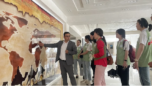 At the Silk Road Tourism University of Uzbekistan, Minister Oubit of the school came to receive teachers and students of the training camp and carry out discussions and exchanges. Minister Obit first led the teachers and students of the College to visit the national costume exhibition with different characteristics in different regions of Uzbekistan, the corridor of Uzbekistan's famous oil painting exhibition, the practice classroom of hotel management students and the library of the first China Book Center in Central Asia. After that, Minister Obit and Dr. Liang Zhenpeng of our Institute introduced the general situation of the two institutions, and reached a preliminary intention to establish long-term contacts between the two sides, carry out common research and build a cooperation platform. Counselor Tian Ge teacher to the college of undergraduate talent training made an introduction. Zhang Weiheng, a 2021 undergraduate majoring in international politics, shared what he saw and heard during his visit as a student representative.