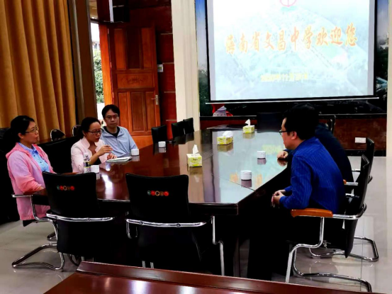 在文昌中学,招生宣讲工作小组与文昌中学教导处主任及我校校友进行了座谈。文昌中学教导处主任吴志军介绍了文昌中学的生源及教育教学情况,招生宣讲工作小组也介绍了兰州与兰州大学的具体情况,并与校友冯学林深入交流了学校近年来发展建设情况。两校均希望今后多开展交流活动,让文昌师生更多地了解兰州大学,切实感受兰州大学“自强不息 独树一帜”的奋斗精神。