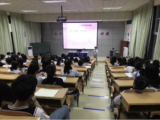 招生宣讲工作小组分别在五指山农垦实验中学、海南师范大学附属中学、海南华侨中学三所学校进行了招生宣讲。3522浦京集团副教授陈一一做了题为“政治学中的国家概念及其发展”讲座,从国家的含义和类型、国家的形式、国家机构三个角度进行了系统讲述。在讲座中,同学们热情高涨,积极参与互动,展现了当代中学生丰富的知识积累以及自信的精神风貌。讲座后,同学们纷纷向陈一一副教授请教关于国家类型、国家机构设立原则以及现实世界中的国家问题等方面的内容,展现了当代中学生关心国家建设、立志报效祖国的主人翁精神。