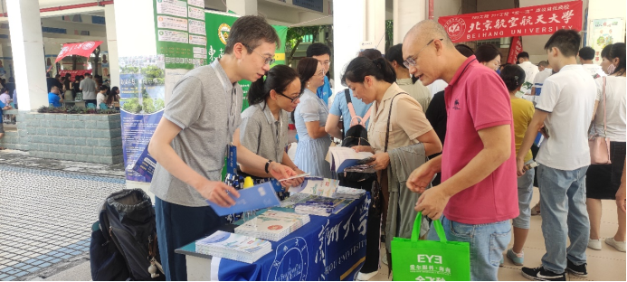 6月28日,招宣小组赶往北京师范大学海口附属学校参加该校的高校招生咨询会。招宣小组向考生和家长发放招生宣传册,仔细询问考生、家长的需求。