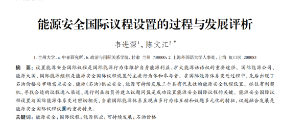 Abstract:The international agenda-setting of energy security is an important way for international energy actors to safeguard their own energy interests and develop their right to speak in world energy affairs. International energy companies,international energy powers and the international energy organizations are key actors and participants in the international agenda-setting for energy security. With the change of the international energy (petroleum) system,three energy security agenda setting have appeared: “petroleum price and market demand security”,“energy (petroleum) supply security” and “energy sustainable development”. The key to successful international agenda setting for energy security lies in seizing favorable opportunities,finding the right agenda for “access”,and building an alliance on shared issues. The international agenda setting for energy security is closely related to the changes of the international energy (petroleum) system. Currently,the international energy system is characteristic of multi-actor interaction and diversity of issues,and the integration and of issues is an important feature of the international agenda for energy security.