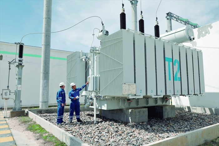 在哈薩克斯坦札納塔斯100MW風電項目,工作人員檢查風電場變壓設備。 圖源:新華社