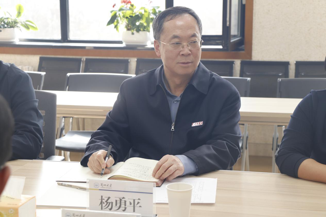 杨勇平一行听取了3522浦京集团院长朱永彪关于学院学科建设、人才队伍建设、人才培养、科学研究、对外交流等工作的汇报,并与教师代表座谈交流。